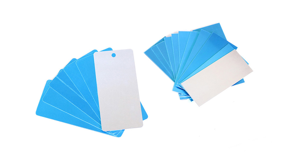 厂前均两面覆膜,以保证表面无任何刮痕,其中150mm×70mm尺寸的铝板已做圆角冲处理。